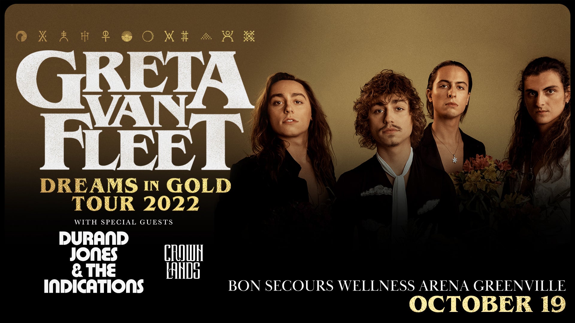 On the heels of their sold out Spring, 2022 Dreams in Gold arena tour Grammy-award winning rock band Greta Van Fleet announce new arena shows for this fall. Kicking off August 16 in Quebec City, QC the band will make stops in 42 cities across the U.S. and Canada; including September 30 at John Paul Jones Arena in Charlottesville, October 18 at PNC Arena Raleigh, October 19 at Bon Secours Wellness Arena in Greenville SC, October 28 at Spectrum Center Charlotte.