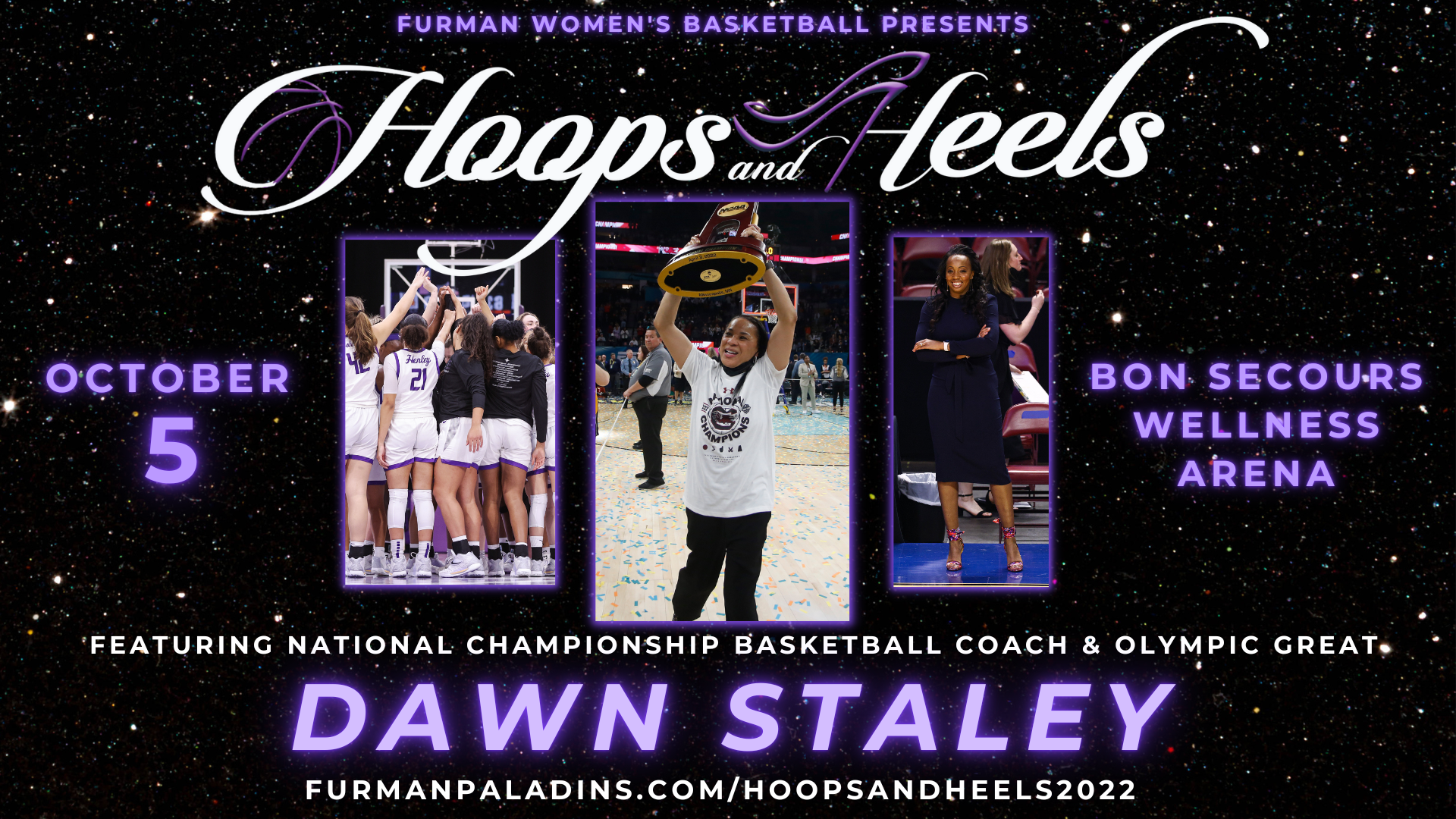 “We are extremely excited to welcome National and Olympic Champion Dawn Staley as our speaker for this year’s “Hoops and Heels” event,” said Furman head coach Jackie Carson. “The interest in women’s basketball, particularly in the state of South Carolina, is at an all-time high due to Dawn’s program at the University of South Carolina. She is not only an amazing leader on the court but personifies true servant leadership with her civic and community engagement across the country. Her words will empower all attendees, and we look forward to the Greenville and Furman communities joining us for a legendary evening.”