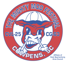 Today, the festival is a four-day event that boasts street dances, a golf tournament, beauty pageant, a baseball game, an arts and crafts sale, and a parade. The festival is a time for the townspeople to celebrate their history and to honor the veterans and crewmen of the USS Cowpens CVL 25 and the USS Cowpens CG63. Mr. Carswell Wynne, a veteran of the USS Cowpens CVL 25 and regular attendee of the Mighty Moo Festival says, "Words can't explain the joy we have when coming to The Mighty Moo Festival, The Battle Ground and being with our families that have adopted us." The festival has street dances, a golf tournament, pageants, baseball games, reunions, and a parade that honors the former crewmen of both the USS Cowpens CVL 25, and the current USS Cowpens CG 63. For more information, please visit www.cowpensmightymoo.com. (Image provided by the Mighty Moo Festival.)