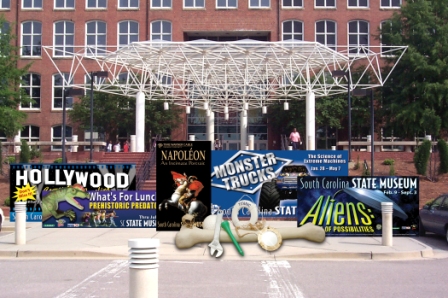 That�s the day the museum will hold its second �garage sale.� �These are things which we have purchased off the shelf, had made for us, or made ourselves that have enhanced our exhibits, to make them bigger, more impressive, to attract attention, or just to make an exhibit more fun,� said Exhibits Director Mike Fey. Many of the props and graphic images are from popular past exhibits on such topics as Norman Rockwell, South Carolina football, the Powers of Nature and more, representing a sort of �State Museum�s greatest hits.� The first sale, in March, was a huge hit with the public, so the museum decided to repeat the event, said Fey. �They snapped up everything in sight really quickly. It was quite a surprise, but a very pleasant one.� The uncommon bill of fare includes, in addition to the aforementioned items, South Carolina college football pennants; old Saturday Evening Post magazines featuring the artwork of Norman Rockwell and other Rockwell collectibles; toy trucks; a dollhouse-size reproduction of the historic Robert Mills house; graphic panels and street banners from a variety of past exhibits; even rolls of indoor/outdoor carpet and chain link and other interesting items that would dress up a rec room, stage play or have any number of fun applications. �Let me stress that these items are not artifacts from our collection,� said Fey. �These things have been used at the museum through the years to amplify the atmosphere of various exhibits, and sometimes have even been re-used in other exhibits or programs the museum has presented. �The large number of props has built up over the years, and we now need to make room for more storage space � and future props, no doubt,� said the exhibits director. �People will find a �treasure trove� of objects at �economic stimulus� prices.� The sale takes place on the same day the museum opens a fascinating exhibit. From the Pee Dee to the Savannah: Art and Material Culture from South Carolina�s Fall Line Region will present art, furniture, weapons, textiles and many more objects which tell stories of the people of the unique area known as the fall line. A geographic area in which the rivers become too shallow to navigate from the Lowcountry, the fall line stretches across the state from Cheraw on the Pee Dee River, through Columbia on the Congaree River to North Augusta on the Savannah. In addition, the Midlands Astronomy Club will host �One Small Step,� a celebration of the recent 40th anniversary of man�s landing on the moon, from 7:15 to 10:30 p.m. The club will set up telescopes in front of the museum for public viewing of the moon, including the Sea of Tranquility where Neil Armstrong first set foot on Earth�s only natural satellite. Club members also will give public star gazers a look at Jupiter, the largest planet in our solar system. The event is free of charge. �These are examples of the amazingly wide variety of fun and stimulating programs and events that the State Museum presents constantly,� Fey said. The garage sale will run from 10 a.m. to noon. The items went fast last time, so Fey advises those interested to come early. �Anyone who enjoys curios or strolling through antique shops or yard sales should check this out,� said Fey. �There won�t be any antiques � the museum�s only 20 years old, after all � but you�d be hard-pressed to find a more varied and unusual � and fun � assortment of objects anywhere.� (Image provided by the State Museum.)