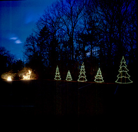 Over 18,000 vehicles took part in the festivities last year. Participants can see many displays, including a bright and shining 45-foot star over Greenville, a tunnel of lights, an animated snowball fight, and Candy Cane Lane, among many others. The cost is $10 per car, minivan, or SUV, $15 per activity van, and $20 for buses. Roper Mountain Holiday Lights is open each night from 6-10 PM, November 22 through December 30. The Roper Mountain Holiday Lights event is sponsored by the Rotary Club of Greenville and the Roper Mountain Science Center Association. Holiday Lights proceeds benefit Roper Mountain Science Center Association and the Rotary Club of Greenville Charities. The Roper Mountain Science Center is located off I-385 at Exit 37 (Roper Mountain Road); cross over the Interstate bridge and the entrance is the second road on the right. For additional information, please call the Science Center at 864-281-1188 or visit their web site at www.ropermountain.org or www.ropermountainholidaylights.com. (Images provided by Roper Mountain.)