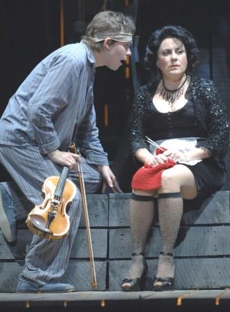 Bagnell came to the Governor's School from Richland Northeast High School in Columbia. While attending a summer program at the North Carolina School of the Arts, he met and befriended students from South Carolina who told him about the arts school in his own state. Shortly thereafter, he found himself at studying violin performance at the Governor's School. Adjusting to the program here was challenging because at RNE he not only played the violin, but he "always sang and danced" and did theatre. But Bagnell likes a challenge, and soon fell in love with the Governor's School, where a major influence was strings teacher Katie Dey. His entire Governor's School experience, he says, prepared him for where he always dreamed of living: New York, New York. Bagnell was accepted into NYU's Steinhardt School, Department of Music and Performing Arts. Although he concentrated on the violin and earned a BMA summa cum laude, he made time to pursue his various artistic interests. Throughout his college years he played gigs from classical to rock in various City venues, from the Bitter End to Town Hall. He gigged in recording studios, as well. Bagnell also auditioned for and got acting jobs in summer stock.That prepared him well for what happened a year ago. In January 2007, Bagnell saw in Backstage, a major actors' trade magazine, an open call notice for the touring company of the Broadway hit Sweeney Todd. That was on a Friday; the audition was Monday. He prepared all weekend, walked into the audition, and delivered the goods. He got the role of "Tobias" and plays not only the violin, but also the clarinet, in the show. Bagnell says their two-month stay at the revered American Conservatory Theater in San Francisco, which started the tour, was "fantastic." They received glowing reviews that have been duplicated everywhere they have appeared. As he looks down the road, he sees more and more opportunity in the arts for "crossovers." His advice for current students is to not only "get good at your discipline," but to "keep your hands in several art areas" because crossovers "are creating new and exciting art." It may be difficult to know where to begin a description of Mr. Bagnell, but it is clear that his talent knows no end. Call 864.467.3000 or order your Sweeney Todd tickets online at www.peacecenter.org. (Photos courtesy of the South Carolina Governor's School for the Arts and Humanities)